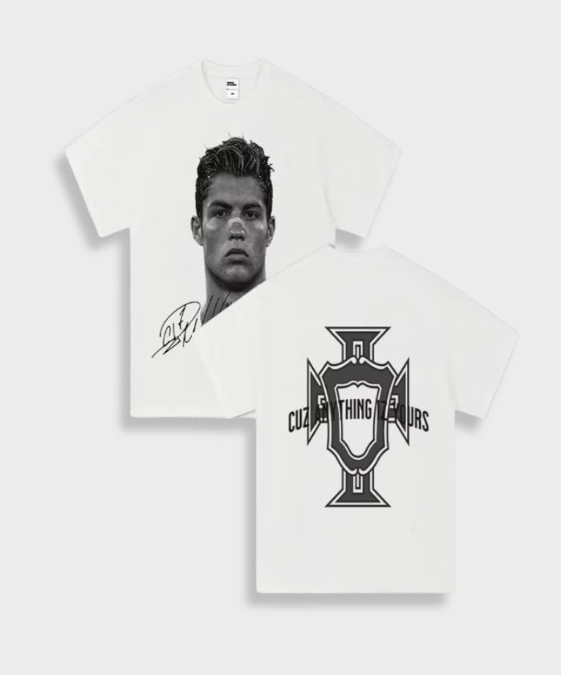 Bold Ronaldo portrait print stands out effortlessly on black.