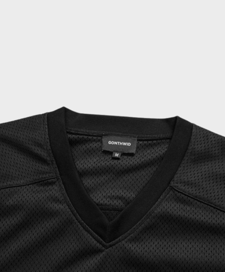 Mesh fabric + V‑neck = breathable, sporty cool.