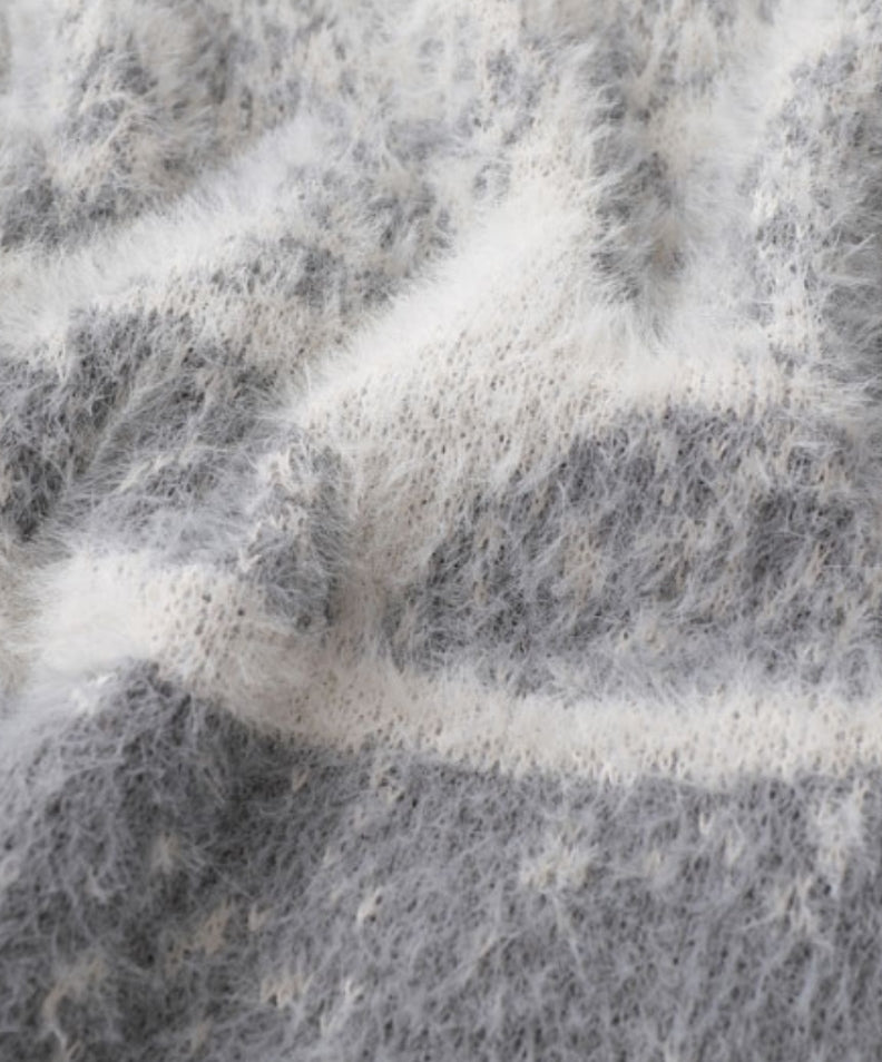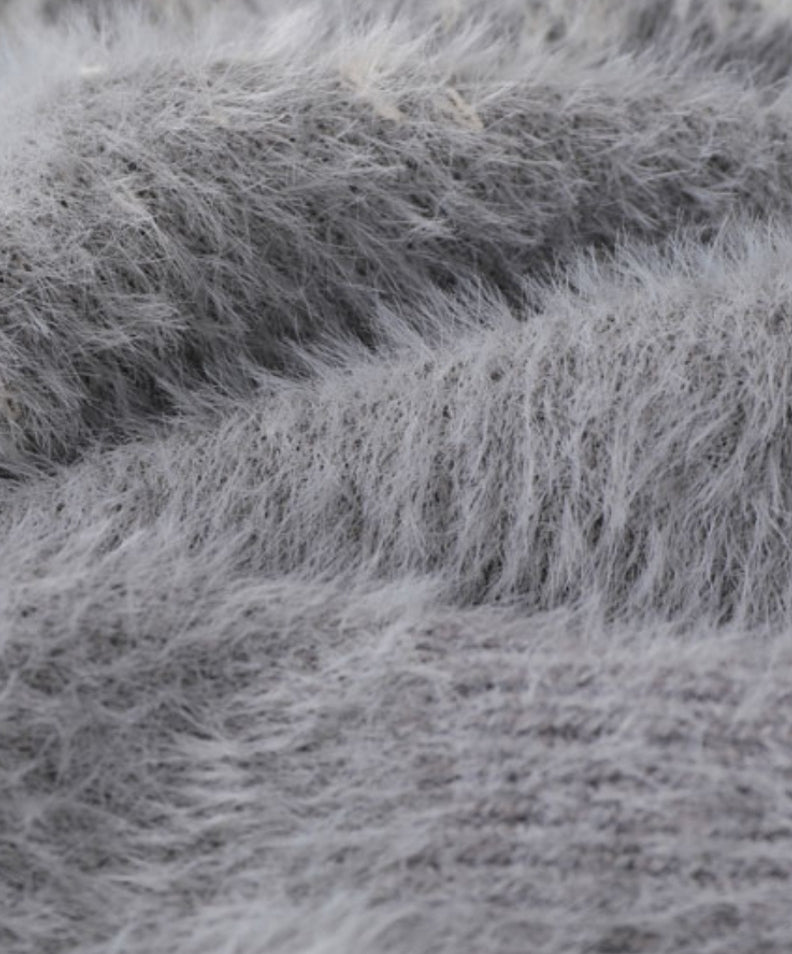Fluffy mohair texture offers cozy, vintage-fuzzy charm.